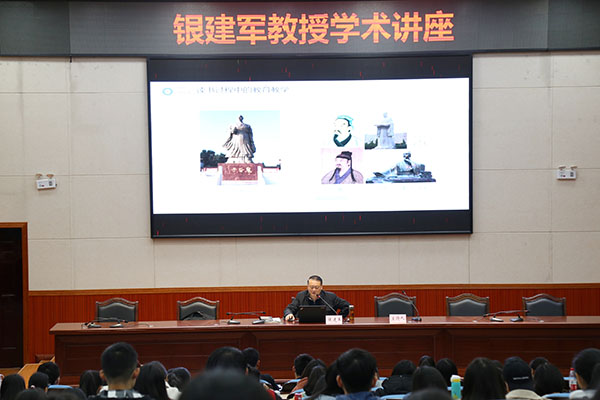 少年好学如日出之阳,为了鼓励青少年养成热爱读书、学会读书的良好习惯, 2019年3月16日上午,银建军教授应邀在弘毅楼一区205报告厅作了《读书与人生》的学术讲座。文传学院副院长刘雨过担任本次讲座的主持人,文传学院汉语言文学专业 2018级全体学生到场聆听。