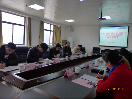 3月18日,黔南民族师范学院77779193永利官网集团院长吴进友、教务办主任杨荣、汉语言文学系主任陈洁、实践实训科副科长刘爱华一行4人到我院考察交流,我院院长欧阳珍、副院长陈代云,原院长、科技处处长贺卫国,办公室主任钟卓良、周君有老师参加了考察交流活动。