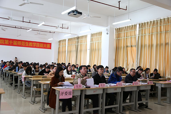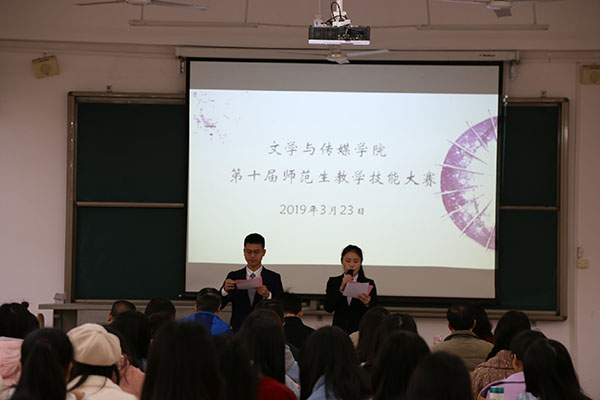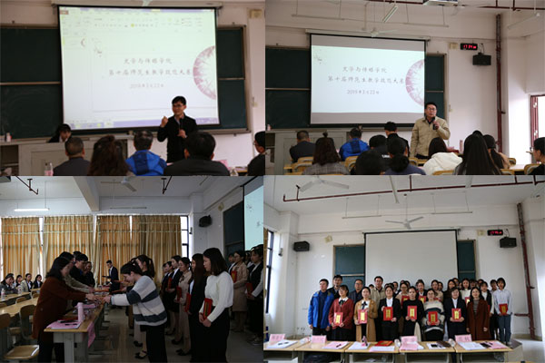 3月23日,文传学院在格致楼102教室举办了第十届师范生教学技能大赛。本次大赛由覃崇夏和兰伊琳主持,学院副院长陈代云教授,熊建军教授、寇占民教授,覃觅副教授和莫帆老师担任了本次比赛的评委。比赛从上午8:30分开始,经过一整天的角逐,一直持续到下午5:30才结束。