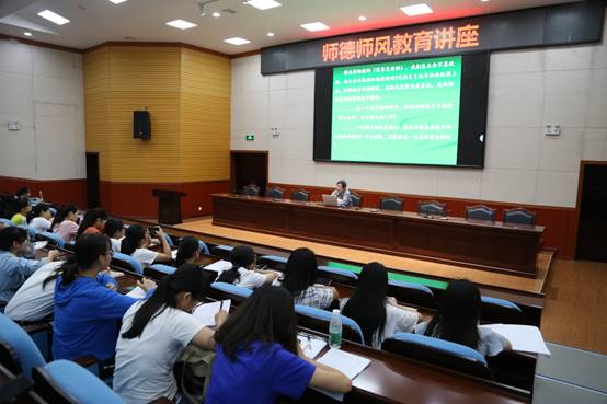 谭为宜以“四有好老师”的标准为切入点,详细讲解了道德修养、师德、教育情怀的内涵、特征、内容及实践,围绕着“提高道德修养 彰显教育情怀”这一主题,引用了大量的古今中外教育家的经典名言,结合各教育界专家的理论、教育界案例、优秀校友事迹和自己多年来的教书育人经历,深刻阐述了教师如何做到“学高为师、德为世范”。他希望同学们要爱国、爱人民、爱教师职业、爱学生,以“四有好老师”为标准,不断提高自己的道德素养和教育情怀,努力做新时代培养社会主义合格建设者和接班人的人类灵魂工程师。谭为宜老师的精彩讲解,赢得了在场师生的阵阵掌声。
