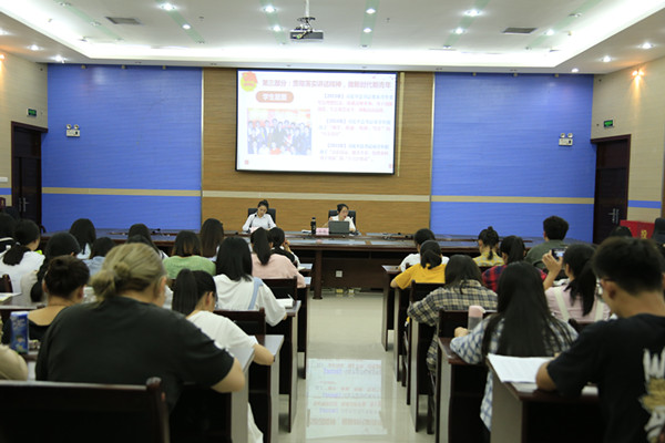 韦柳从习总书记纪念五四运动100周年重要讲话精神的要点,传承五四精神和贯彻落实习近平总书记重要讲话精神、做新时代新青年三个方面分别展开。她谈到了学习五四运动精神的重要作用,并且对我们当代大学生提出了殷切的期望并且详细地解读了习总书记对新时代新青年所提出的六个新要求,即新时代青年要树立远大理想、热爱伟大祖国、担当时代责任、勇于砥砺奋斗、练就过硬本领、锤炼品格修养。
