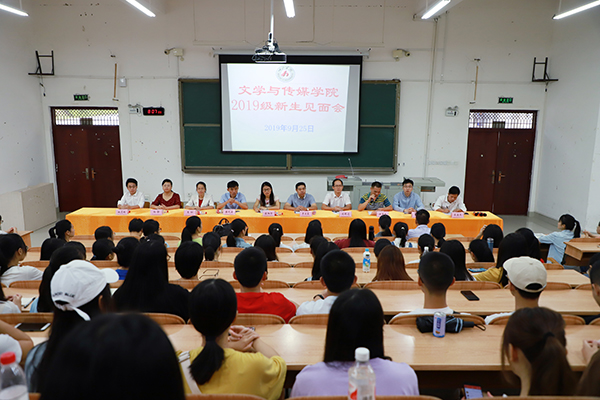 25日上午,文传学院2019级新生见面会在弘毅楼1-105室顺利召开。院长欧阳珍,党委书记牙运豪,副院长刘雨过、陈代云,党委副书记韦柳,团委书记于晓平,汉语言文学专业主任欧造杰、秘书学专业主任姚志林、汉教专业主任杨静以及辅导员和2019级新生班主任出席了见面会。见面会由办公室主任钟卓良主持。