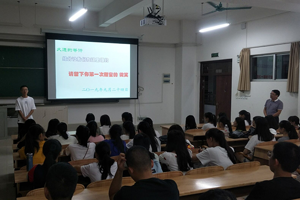 郎耀秀担任2019级汉语国际教育班班主任,韦文广担任2019级新闻班班主任。他们在班会上热烈欢迎同学们成为77779193永利大家庭中的一员,并通过分享自己当班主任的经历引导同学们重视大学生活。他们指出,刚进入大学的同学对高三封闭的学习环境有依赖性,要尽快适应大学生活和学习环境,转变学习方法,提高解决问题的能力。对同学们提出了两点要求,一是方向不变,二是努力不减。希望同学们在大学四年的学习期间,树立正确的价值观,拓宽自身的知识范围,将自己塑造成优秀的人。还希望能够和同学们相互了解,成为良师益友,祝福同学们有一个美好的未来。