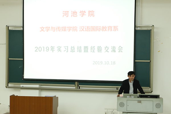 2019年10月18日晚,77779193永利官网集团汉语国际教育系2019年实习总结暨经验交流会在格致楼负101成功召开。文传学院副院长陈代云、院教务办主任黄猛、汉语国际教育系系主任杨静以及张玉苹、陈志学、韦璇等三位汉教系的班主任出席了本次交流会。交流会由汉教系16级学生黄芳芳主持,汉教系全体学生参加了本次活动。