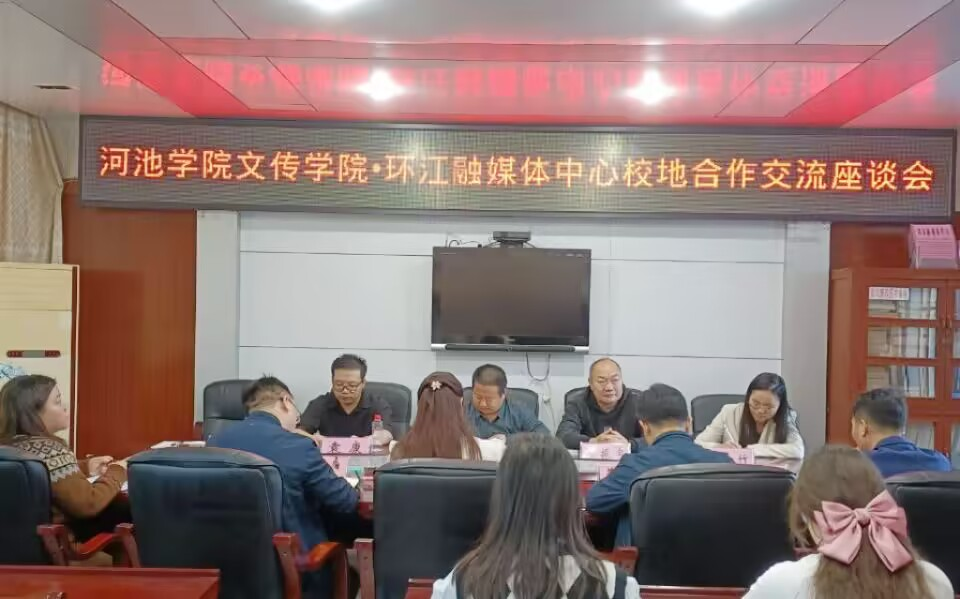 3月28日,学院院长熊建军和党委副书记韦振宇一行五人前往环江县融媒体中心、河池市融媒体开展校地合作交流会与“访企拓岗”活动。