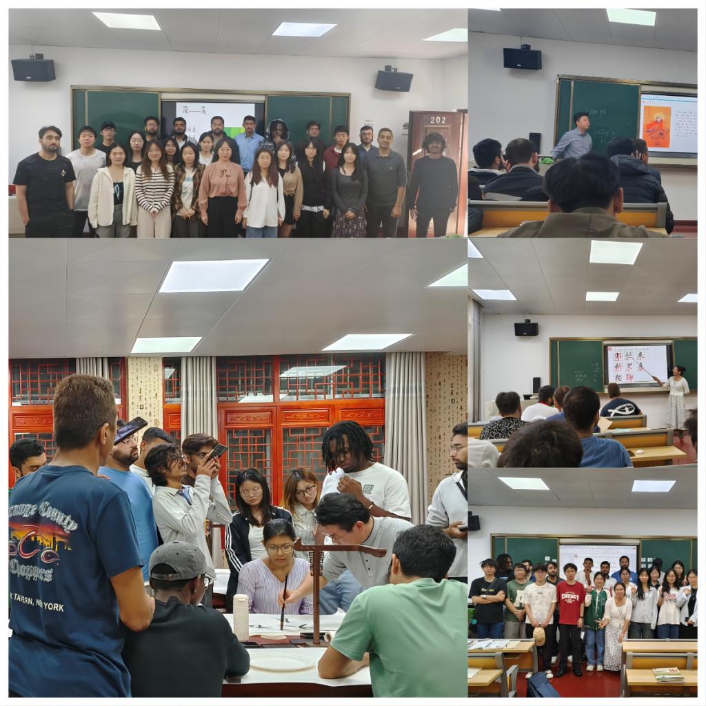 本次教育见习的科目有:综合汉语、汉语听说、汉语读写、中国概况、中华才艺之美术书法与剪纸。在不打扰留学生上课和任课教师正常授课的前提下,汉教22级43名同学分六组有序落座于教室后排,与留学生一同上课,观摩和学习老师们的汉语和中国文化教学,每组完成了10课时的听课。课后,同学们与任教的唐梅、覃丽娟、王勇亮和韦联华等老师进行了交流,向老师们请教国际中文教育教学的方法。