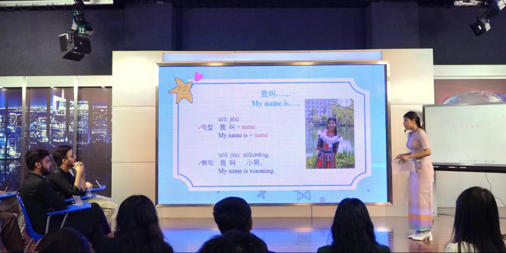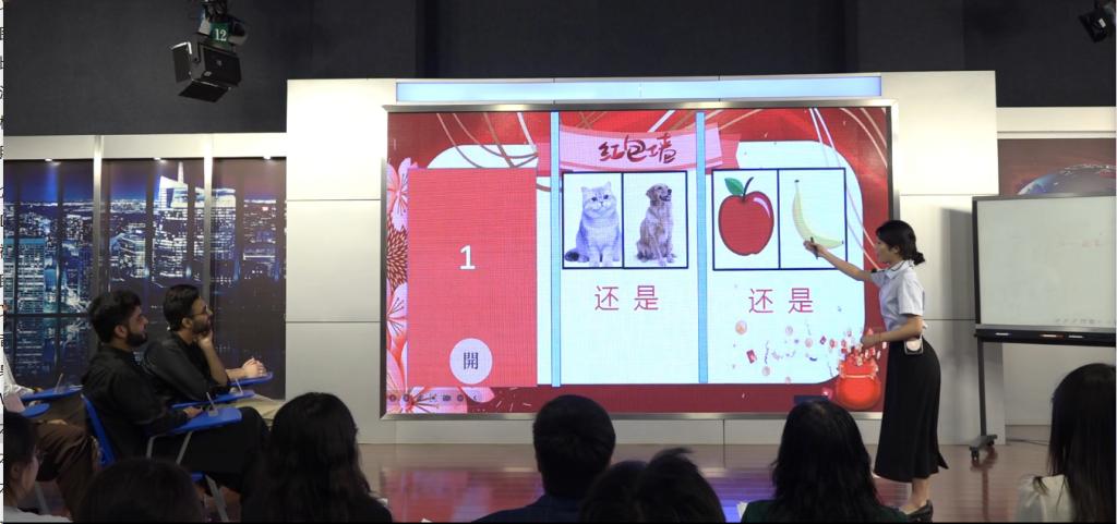 大赛分教学技能展示和中华才艺展示两个环节。教学技能展示环节,5名国际学生上台作为教学对象配合选手们的授课。选手们各显神通,通过精心设计的教学方案、生动有趣的教学方法,将汉语知识深入浅出地呈现出来。