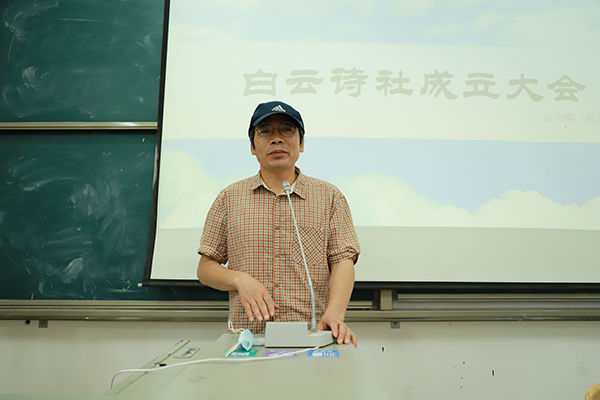 黄土路主任在讲话中,表达了自己作为指导老师组织成立诗社的初心。他说,我希望有一个不毕业的诗歌班,让已毕业同学继续写诗,爱写诗的同学不断加入。他谈到,诗社主要活动是写诗和出诗歌刊物。他希望,诗社成员们能一起写诗,毕业后也还一起写诗,让诗社像家一样,可以存在很久很久。