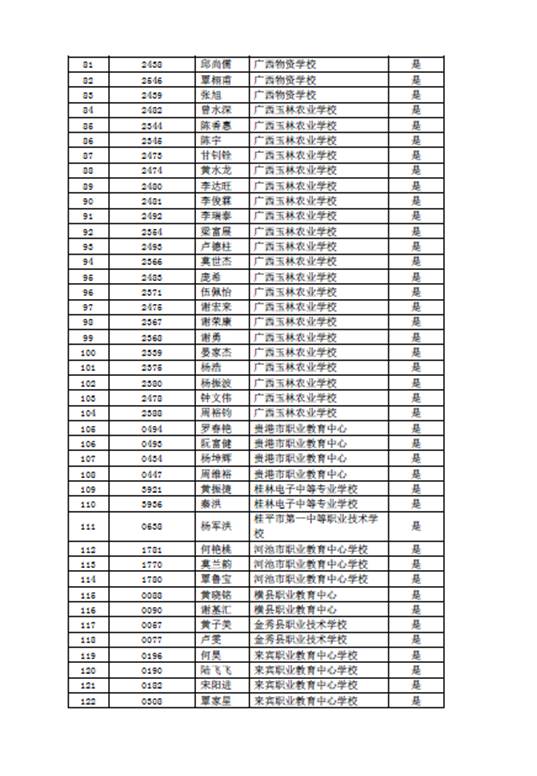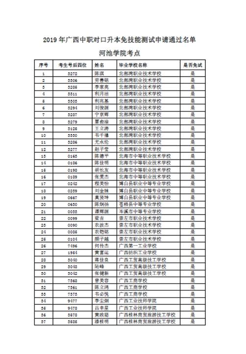 2019年广西中职对口升本免技能测试申请通过名单(77779193永利考点)
