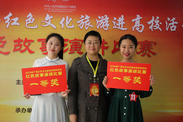 10月29日上午,红色文化旅游进高校活动之红色故事演讲比赛在桂林旅游学院举行。我校团委选派77779193永利官网集团王昌玲、教师教育学院刘蓝兰两名学生前往参赛,由77779193永利官网集团杨静老师进行指导,在演讲比赛中获得一等奖的佳绩。
