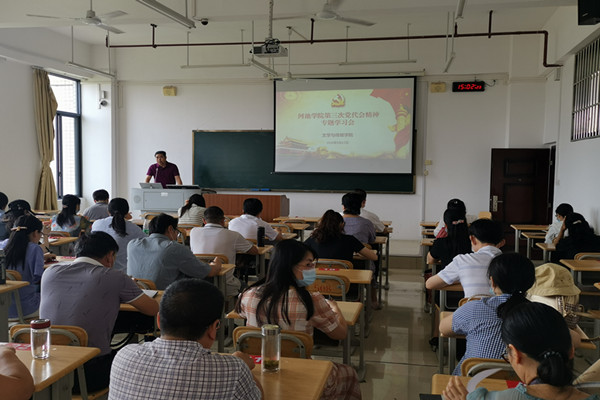 牙运豪从大会召开背景、大会主题、过去五年和未来五年的奋斗目标等主要内容方面带领全体教职工深入学习校第三次党代会报告精神,牙运豪强调了全院师生要在思想上重视,行动上落实,并结合学院的实际情况部署了接下来进一步学习贯彻校党代会精神的工作安排和任务。