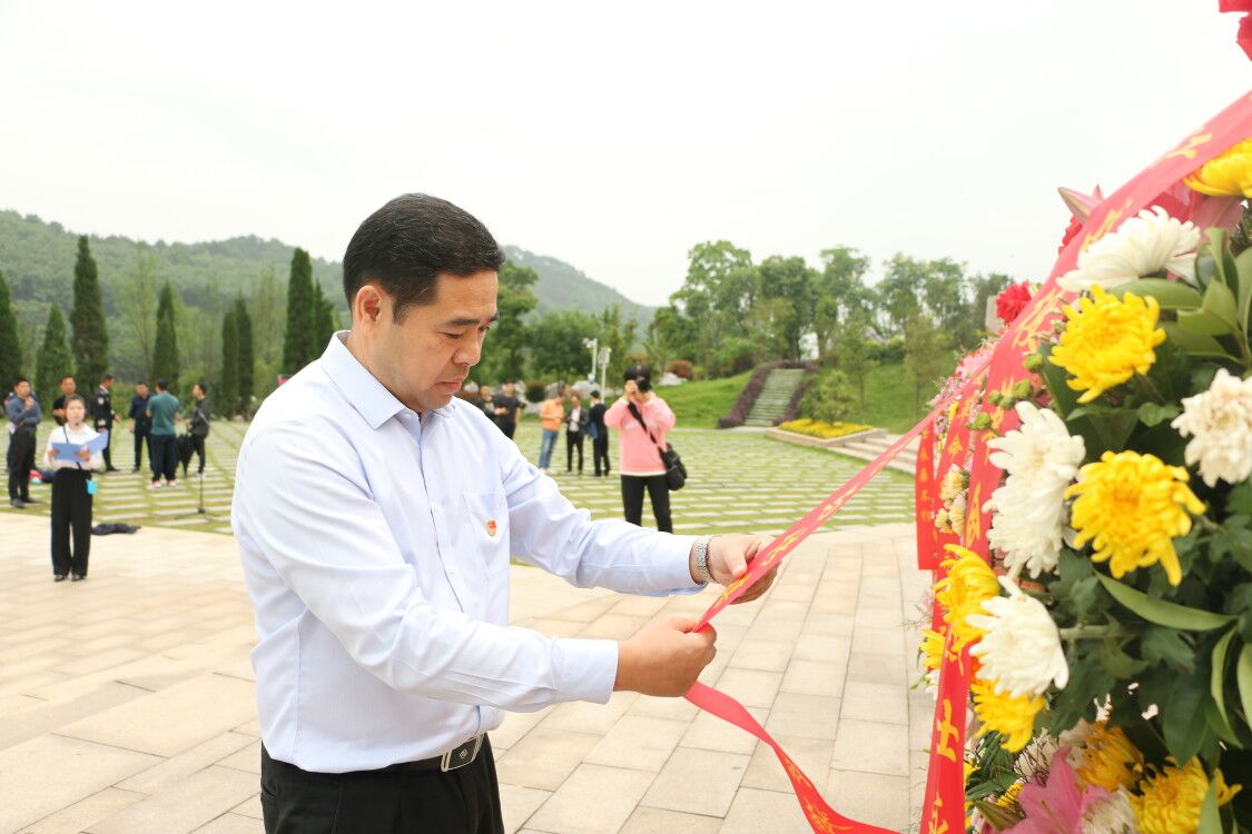 在红军长征湘江战役纪念林,全体党员教师重温入党誓词,并向湘江战役红军烈士敬献花篮,慰藉英灵,表达对在湘江战役中牺牲的红军的沉重哀悼和崇高敬意。