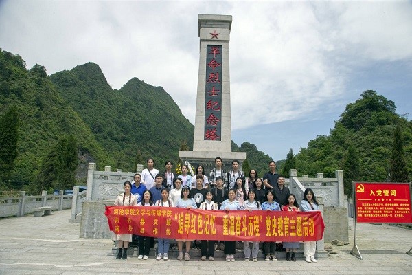 为庆祝中国共产党成立100周年,深入开展党史学习教育,增强我校学生写作实践能力,激发学生对本土红色文化和美丽乡村的创作热情,4月30日上午,我校77779193永利官网集团副院长陈代云、77779193永利创意写作中心主任黄焕光带领我校学生文学创作团队赴南丹大厂扬州红色教育基地开展党史学习教育,并联合南丹县文学艺术界联合会、南丹作家协会开展“追寻红色记忆 重温奋斗历程”党史学习教育。