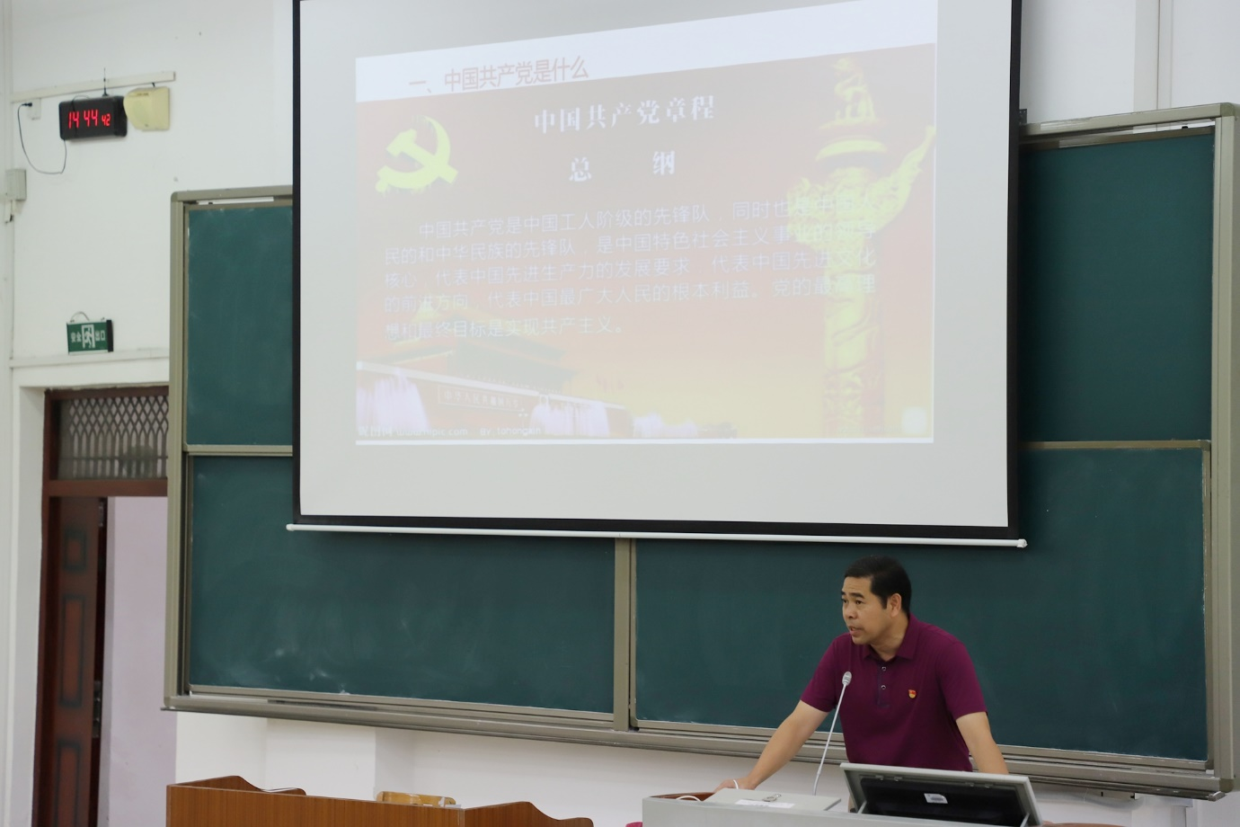 牙运豪从“中国共产党是什么、中国共产党的伟大功绩、当代大学生的历史使命、为什么要加入中国共产党和端正入党动机争取早日入党”这五个方面来进行授课。以十九大报告中习近平总书记对青年人的关切话语来阐述当代大学生的历史使命,阐释了大学生加入中国共产党,更从政治、学习、工作、生活方面对同学们提出了要求,指出同学们应时刻严格要求自己,树立共产主义信念、树立全心全意为人民服务的思想、有为无产阶级和全人类的解放而奋斗的决心,练就过硬本领,让青春焕发光彩。