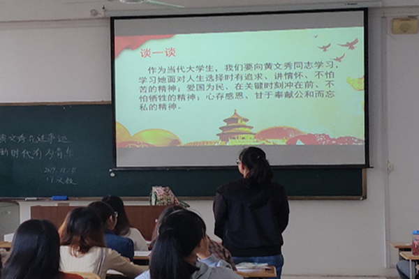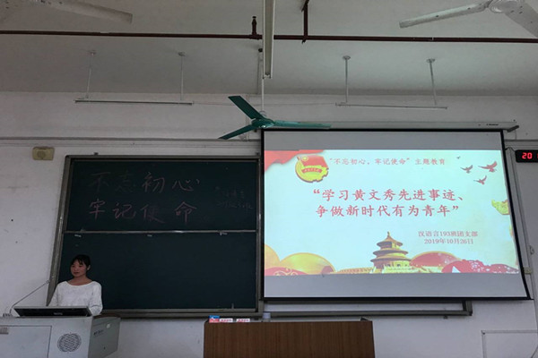 文传学院团委向来重视青年的思想引领工作,通过本次“学习黄文秀先进事迹,做新时代有为青年”专题学习,进一步让广大青年团员跟紧党的步伐,在做好党的助手和后备军的同时,不忘入团“初心”,不忘历史“使命”,把激扬青春汇入祖国发展的时代洪流,把个人青春梦编织入中国梦之中!