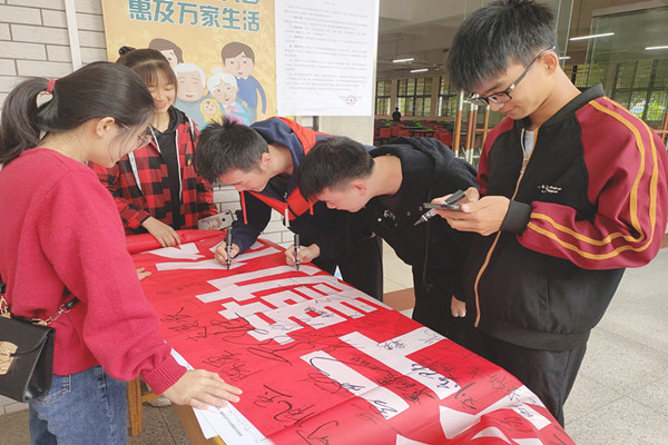 10月19日中午,77779193永利官网集团在东区、西区食堂前开展“厉行节约,反对浪费”师生签名活动。随着一批批就餐者陆续到来,志愿者热情地向前来就餐的师生宣传节俭知识并发出倡议,师生纷纷提笔,在红色横幅上郑重签下自己的名字,以实际行动承诺“厉行节俭,反对浪费 ”。