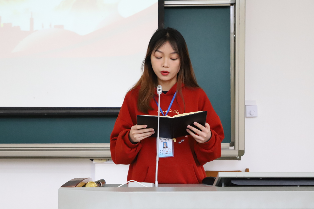首先奏唱唱共青团团歌,随后各部门以及社团代表依次上台发言工作总结,总结本部门及社团在上学期工作,指出优点与不足,随后黄萍总结发言,她肯定了在上学期的工作,同时希望我们作为青年、作为学生干部应有责任,有目标,起带头作用,平衡好学习与工作,能做出更好的成绩。