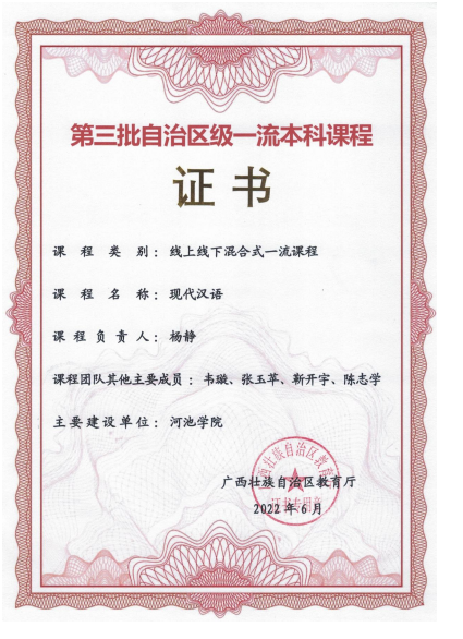 《现代汉语》获批第三批自治区级一流本科课程