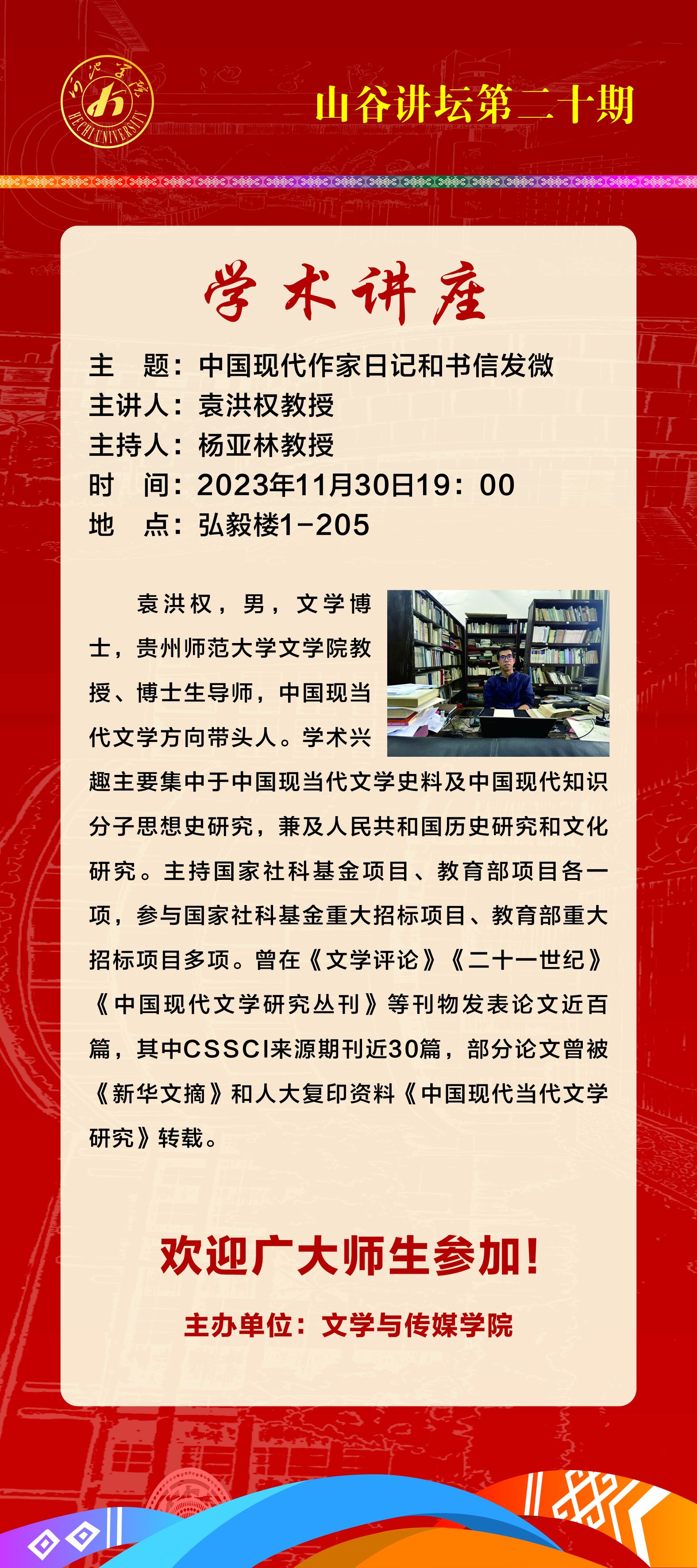 【山谷讲坛】第二十期:中国现代作家日记和书信发微